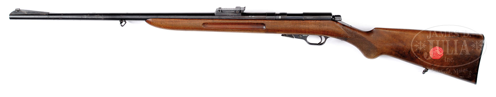 ◊*WALTHER MODEL II BOLT AUTO .22 RIFLE.SN 85409. Cal. 22. 24-1/2″ bbl. Standard markings. Crown BUG proof on right side of bbl. Checkered wood stock. Comes with one mag. PROVENANCE: Session Two of the extraordinary Warren Buxton collection. CONDITION: Fair condition, as refinished. Receiver address barely legible. Areas of rust and minor pitting on bbl. Stock has 5″ piece missing from right side forward of bolt handle. Buttplate is cracked on both edges. Bore is fine, sharp with strong rifling. Mechanics are fine. All external numbers matching. 52342-1 GER (400-600) C&R – Lot 2385