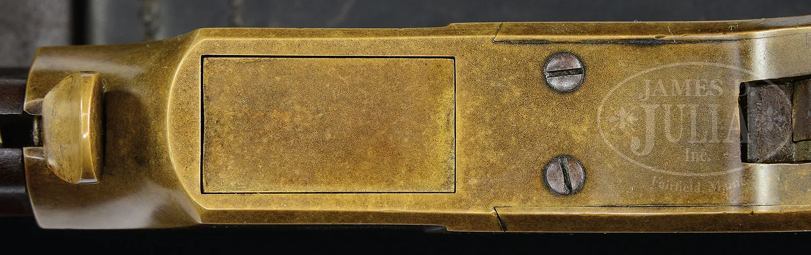 RARE TYPE-1 MARTIALLY MARKED HENRY MODEL 1860 LEVER ACTION RIFLE.SN 3558. Cal. 44 RF Henry. Usual configuration with 24-1/4″ oct bbl that has integral mag tube and late-style German silver front sight with square rear edge and a 900 yd. Henry ladder rear sight without slide retaining screw. Mounted with uncheckered, nicely figured, straight-grain American walnut buttstock that has a factory sling swivel on the left side over the distinctive “Henry Bump” and a corresponding staple and ring on the left side of the bbl. Buttplate is 1st style with rounded heel and large trap. The two buttplate screws have beveled heads and are matching numbered to the rifle. SN is found in the usual places on the top flat of the bbl between the frame and rear sight, left side of the lower tang under the wood, inside top tang channel of buttstock and inside toe of buttplate. Rnd portion of the bbl under loading sleeve is marked with the assembly number “942” with matching number on rear face of loading sleeve. Right flat of bbl, at the receiver, is stamped with the inspector initials “C.G.C.” (Charles G. Chapman) over a small “H” (B. Tyler Henry) inspector initial with a corresponding “H” on the front side of frame. Left bbl flat at frame also has a small “C” with an adjacent “H” on the receiver. Left side of the buttplate heel is also marked with a small “H” and corresponding “H” on the left heel of the wood. Right side of wrist bears the small “CGC” cartouche. Inspector initials on left side of bbl, receiver, buttplate and stock are the first encountered by this cataloger, but appear to be authentic. Accompanied by a 5-pg letter from renowned Winchester historian and author, George Madis, wherein he notes most of the above information and authenticates this rifle. The federal government purchased a total of 1,731 Henry rifles during the Civil War, of which about 1,100 were the Type 1 series, primarily found in the 3xxx serial range mostly from orders placed in 1863. Type 2 martial Henry’s are those from orders of 1864 & 1865, in the 7xxx to 9xxx serial range. From research of the Federal archives it appears that this rifle may have been issued to the 1st DC Cavalry then recalled and late in the war issued to the 3rd Regiment of Veteran Volunteers. This unit was intended to become a regiment of “shock” troops, however, due to their late entry into the war, were used primarily for picket and guard duty protecting the Capitol and saw very limited action. As part of their enlistment, with honorable service, upon completion of their term of service, they were permitted to retain their issue arms and accoutrements. Apparently, most of these troops availed themselves of this benefit and these fine Henry rifles became hunting and home protection rifles with many of them going west during the great westward expansion of Manifest Destiny. Few of these rifles survive today and rarely with any original finish. It is rare to find a visible cartouche on the stock. PROVENANCE: Barnes Family Collection. CONDITION: Very fine. Bbl and mag tube retain an artificially aged pleasing brown patina over very fine pinprick pitting. Receiver and side plates have crisp edges and a wonderful dark mustard patina. Lever and hammer are a natural dark patina. Stock has a couple of hairlines back of top tang otherwise wood is sound with a few light nicks and scratches, a couple of minor grain checks near the right toe and retains a slightly enhanced hand-worn patina. The “Henry Bump” is prominent. Mechanics are fine, strong bore with moderate pitting. Sling is not antique. Cleaning rod is fine. 52527-17 (35,000-45,000) – Lot 1006 Click here to view provenance