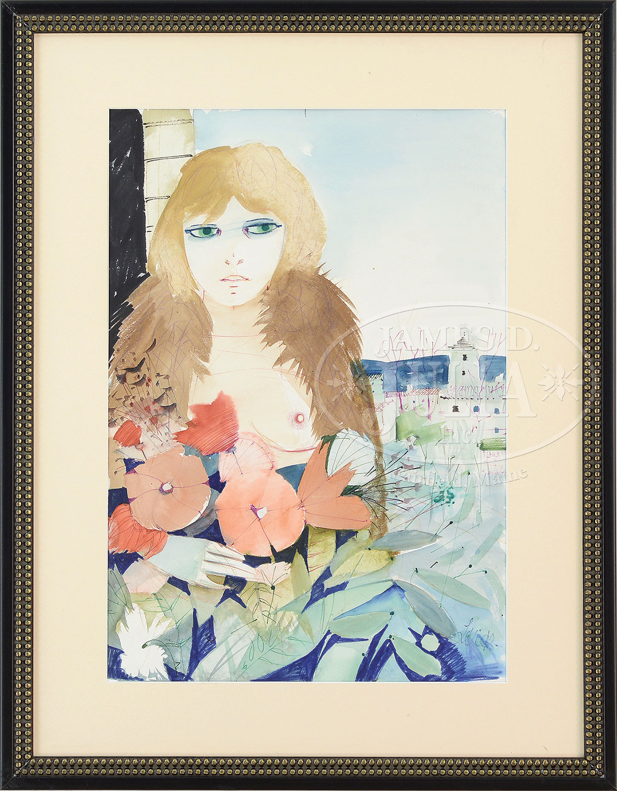 JACK LEVIER (American, 1920-2003) GIRL WITH FLOWERSWatercolor on paper