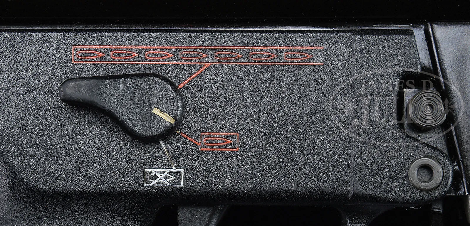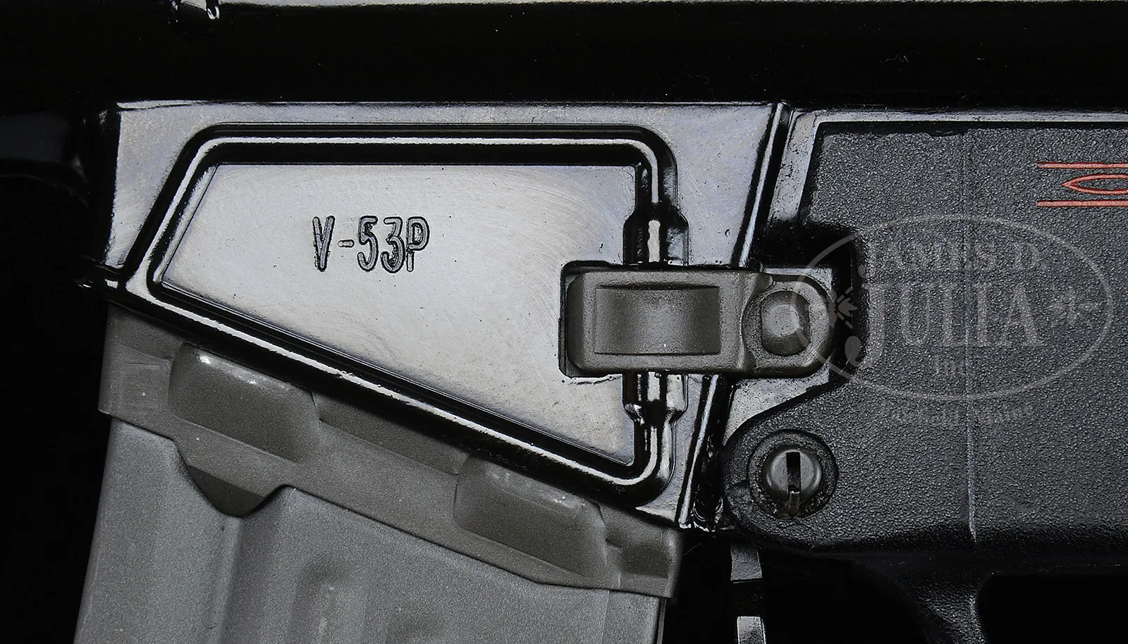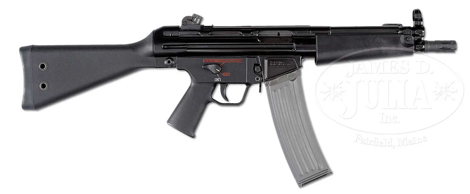 **HIGHLY DESIRABLE AND EXTREMELY POPULAR FLEMMING REGISTERED H&K MACHINE GUN SEAR PACK REGISTERED IN MULTIPLE CALIPERS ON VECTOR MODEL V93 HOST GUN. (FULLY TRANSFERABLE).SN H 2358. Cal. 223. 9-5/8″ bbl. Exceedingly fine condition specimen of a Vector V43 machine gun with highly desirable Heckler & Koch Fleming registered forward tab, rear push pin, three position auto sear pack. Auto sear handgrip is of the ambidextrous type, hard composite housing and current registration form indicates 9mm in block 4-C with “Additional configuration calipers-.233 and .308” in block 4-H. Included with this lot are two metal 40 round magazines. Typical Vector Arms markings on right side of magazine well with model “V-53P” on left side of magazine well. Top of receiver forward of rear sight marked “VE2 036”. This is a National Firearms Act item and requires BATF approval for transfer. This item is fully transferable on an ATF form 3 or 4. CONDITION: Overall appearance and finish extremely fine. Original glossy black hard coat finish with gray parkerized magazines. Mechanics are crisp. Bore is extremely fine, brilliant and bright. Composite furnishings also extremely fine. The HK auto sear pack is very highly sought after as it can be moved from host gun to host gun giving great versatility to the owner as to the firing platform caliber they desire. This pack on this high condition specimen will make a great addition to the modern firearms enthusiast’s collection. 52939-20 JWK (25,000-30,000) – Lot 1003