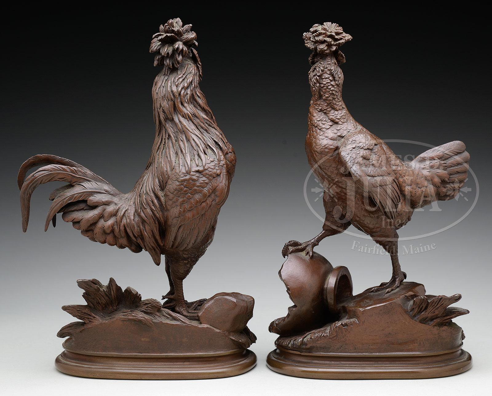 JULES MOIGNIEZ (French, 1835-1894) TWO WORKS: “POULE DE HOUDAN” AND ANOTHER CHICKENBronze