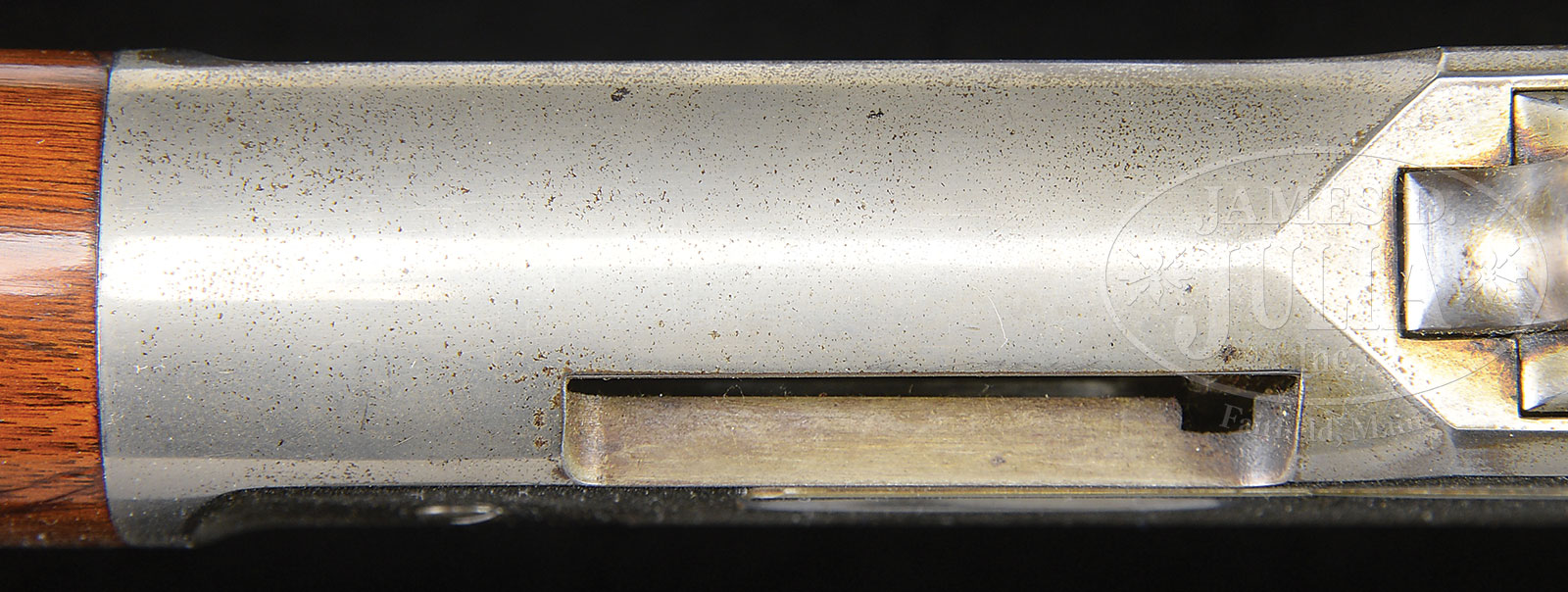 IMPRESSIVE AND RARE WINCHESTER CUTAWAY 1ST MODEL 1886 WITH NICKEL FINISH IN 45-70 CALIBER.NSN. Cal. .45-70. 26″ full oct bbl that retains a nickel finish. Receiver, breech bolt, hammer, buttplate, lever and trigger are nickel as well. This is a 1st Model 1886 cutaway, which is extremely rare showing all the inner workings of the receiver with the stock attached as well as buttplate. Stock is of American grade straight grain walnut, as well as the forearm. Cutaways normally do not have SN. Upper tang marked “MODEL 1886”, bbl is marked “45-70” on top flat and regular rolled die stating “MANUFACTURED BY THE / WINCHESTER REPEATING ARMS CO. NEW HAVEN CONN.” PROVENANCE: The spectacular collections of Ray Bentley featuring the finest and rarest deluxe antique Winchesters in the world. CONDITION: Excellent. Oct bbl retains 80-85% nickel with balance turning patina color. Mag tube retains 90%+ of its nickel finish. Forearm cap with about 50% nickel finish. Receiver retains about 60% nickel, approx 40% on breech bolt. Hammer, trigger and lever are also nickel plated with hammer retaining 75% nickel, with trigger at approx 20% nickel and lever retains about 30% nickel. Buttplate is 75-85% nickel with balance turning silvery color. Wood has very few light impressions on both left and right sides with no other cracks or missing wood evident. Forearm has 80-90% finish with few compression marks, having no splinters or missing wood. Bore appears unfired. Mechanics fine. This Winchester rarity would be a centerpiece in any collection or display of 1886’S and belongs in an advanced collection. 53091-167 MS (20,000-30,000) – Lot 2057
