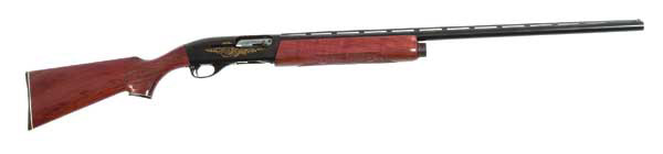 *REMINGTON MODEL 1100 DUCKS UNLIMITED COMMEMORATIVE. Cal. 12ga. Standard 1100 with 30″ vent rib full choke bbl with gold wash etch engraving and an enamel “DU” plaque on the left side of the receiver. Pressed checkered wood of moderately figured walnut. SN DU6105. CONDITION: As new. retains virtually all its original finish to both metal and wood. 4-46708 JR290 (300-500)