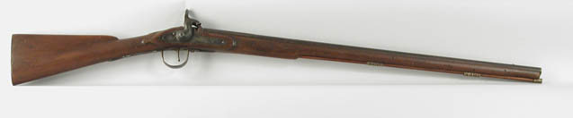 NORTHWEST PERCUSSION TRADE GUN CHIEFS’ MUSKET BY PARKER FIELD & SONS. ca. 1868 CAL. about 60. Beautiful trade musket with 30″ oct. to round bbl, full-length stock, brass ramrod guides containing a brass tipped wood rammer. The breech end of the bbl has various British proofs and what probably was the fox cartouche. The lock plate is marked with the makers’ name over “LONDON” in front of the hammer with the date 1868 vertically behind the hammer and the fox touch mark at the back edge. The sideplate is a scaled serpent secured with three screws. A similar example appears in “The Northwest Gun” by Charles Henson. CONDITION: Very good. The bbl retains an even dark brown patina with scattered rust and widely scattered spots of heavy pitting. Heavy pitting on the hammer and around the nipple area. The wood is sound missing some minor chips around the lock plate and retains most of an old refinish. 4-45355 JL264 (2,500-4,000)