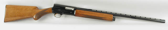 *BROWNING A-5 SEMI-AUTO SHOTGUN. CAL. 20ga. Grade 1, blued finish with 26″ vent rib bbl and checkered light European walnut stock and forearm with “FN” logo black composition buttplate. SN 6Z5992 CONDITION: About new. Retains virtually all its orig. finish to both metal and wood. 4-44489 JL15 (500-800)