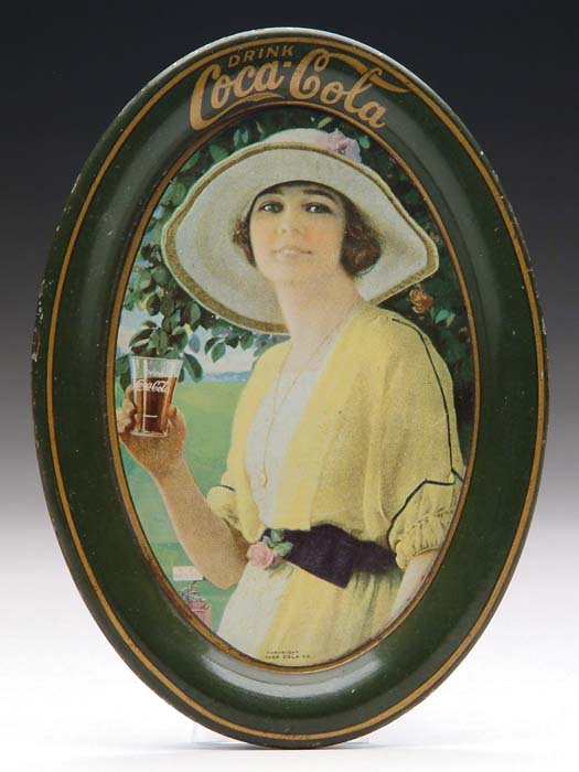 COCA-COLA 1920 TIP TRAY. Illustration of woman in yellow outfit on the golf course. SIZE: 4-1/4” w x 6” h. CONDITION: Overall very good to excellent with just a few light surface blemishes. 1-6927 (300-500) Auction: Advertising, Toy & Doll - Fall 2006 Please Note: All prices include the hammer price plus the buyer’s premium, which is paid by the buyer as part of the purchase price. The prices noted here after the auction are considered unofficial and do not become official until after the 46th day. |