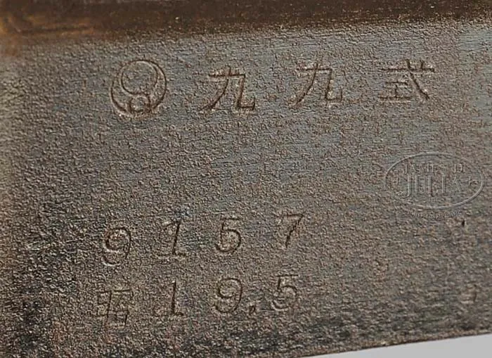 **JAPANESE TYPE 99 LIGHT MACHINE GUN (C&R DEWAT). SN 9157. Cal. 7.7 Japanese, 22″ bbl. Type 99 LMG manufactured by Nagoya in May of 1944. Includes detachable muzzle cover & bipod. However, gas regulator, bolt, charging handle, buffer assy, and drum rear sight knob not present. Magazine cover & ejection port cover assy also not present. Bbl retaining wedge & knob and bolt lock not present. No magazine present. Bipod leg locking latches not present. Lower assy retaining wedge not present. Rear of bbl has been plugged by welding. Bbl also welded to receiver. Gas-piston present, partially withdrawn & rusted to receiver. This weapon is currently unserviceable as a registered Dewat. Muzzle cover opens & shuts. Bipod legs rotate freely. Sear safety bar cover opens & shuts freely. Sear safety bar is present. Trigger does not articulate. Ejector cover opens & closes freely and ejector moves freely. Wooden carrying handle, pistol grip and buttstock, although chipped & discolored, are complete and present. Accompanied by a proper Moriko-Tokyo 2.5×13 scope with “Peleliu 9-15-44” scratched into the ocular bell. CONDITION: Overall, finish & appearance is “attic” condition with metal parts having a rough corrosion throughout. Unable to check condition of bbl due to being plugged at chamber. Wooden parts have chips & gouges and are discolored but are sound and serviceable. Scope is well preserved. Optics are clear,some losses to the exterior enamel, brittle rubber eyecup. With the appropriate parts and some tender loving care, this GI bring back could likely be restored to firing condition. 4-42673 JK2 (2,000-3,000)