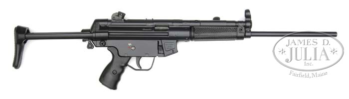 *HK 94 SEMI-AUTO SN 001. SN 001. Cal. 9mm. 17-1/2″ bbl. Lowest number HK 94 in premium condition. Action operates smoothly when cycled by hand and appears fully functional. No magazine present. PROVENANCE: Walker Inman Trust. CONDITION: Overall finish and appearance is simply outstanding. Some slight flecks of finish off bbl. Rest of arm is 98-99%. Bore is excellent, as new. Bolt is also excellent. Telescoping buttstock operates freely. This weapon, with its condition and serial number is a must for the true HK collector. 4-41257 JWK23 (6,000-10,000)