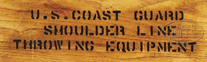*EXTREMELY RARE CASED SPRINGFIELD MODEL 1903 LINE THROWING GUN. SN 995825. Cal. 30 Blank. Unusual rifle made up for the Coast Guard and assembled from various parts from different eras, this rifle has a 24″ tapered rnd smoothbore bbl that was originally a rifled bbl that has had the front sight removed and lightly machined removing most of the markings leaving only the partial date “29”. The Buffington rear sight sleeve has been milled flat on top. Receiver has usual “1903” markings with gray/green parkerized finish. Trigger guard & floorplate are missing. Mounted in a service model 1-pc walnut stock with grasping grooves, shortened in length to just above the lower band with the handguard shortened to match. Stock has two reinforcing bolts and is without cartouches. Buttplate has been replaced with a red, Hawkins waffle pad. Buttplate tang recess has been plugged at the Armory. Front band, which normally carries a sling loop, now has the front bracket for the line canister in that place with the rear bracket a strap around the forestock & handguard with a screw through the center. Accompanied by its orig dovetailed oak hinged lid case, 46-1/2″ long x 11-3/4″ wide x 7″ deep. Corners are dovetailed while the bottom & top boards are screwed in place. Front has two clip latches and a heavy steel carrying handle. Top of lid is stenciled “U.S. COAST GUARD / SHOULDER LINE / THROWING EQUIPMENT” and front of case has a brass Price Brothers manufacturer’s plate and inside lid has a paper instruction sheet. Interior is compartmented for the rifle in secure blocks in the bottom with a brass cleaning rod, spindles containing three spools of shot line, a wooden mallet, two 20-rd boxes of grenade launcher blanks and a block in left rear corner for cleaning brushes & patches. The rewinding machine is missing and four of the cartridges have been fired. Inside the lid has metal brackets containing seven 13 oz. projectiles with another rack for three 15 oz. projectiles which are missing. This rifle is described in detail on pp. 151-153 of The Springfield 1903 Rifles, Brophy. It appears that this exact rifle and its case is pictured on p. 151. PROVENANCE: Bob Rosenthal Collection. CONDITION: Very fine. Metal retains most of its orig Armory gray/green parkerized finish with only minor sharp edge wear. Stock has a hairline grain check in wrist with minor handling & use nicks & dings and retains most of its Armory oil finish. Mechanics are fine, dark pitted bore. Case is very fine with a few chips on corners and a minor crack in front of lid, otherwise retains virtually all of its orig varnish. Contents are fine. 4-39217 JR21 (7,500-12,500)