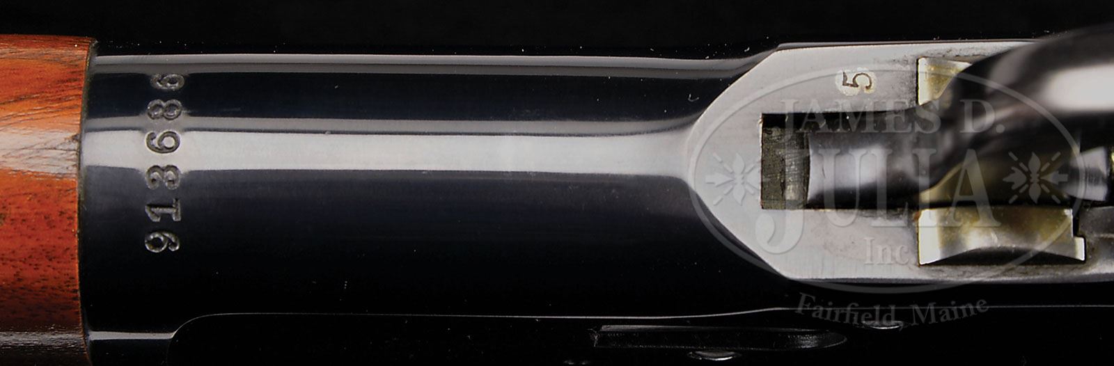 *WINCHESTER MODEL 92 LEVER ACTION RIFLE. SN 913686. Cal 25-20 WCF. Standard grade rifle with 24-1/4″ oct bbl, full magazine, standard front sight with screw & flat top rear sight. Mounted with uncheckered, straight grain American walnut with straight stock & crescent buttplate. This rifle was produced in 1922 and being a small bore was generally considered to be a boys or ladies rifle for varmints & small game and usually saw hard service in the hands of inexperienced shooters and are rarely found today in pristine condition. PROVENANCE: Woody Frey Collection. CONDITION: Extremely fine plus, all orig. Overall retains about 99% plus crisp, orig factory blue on all the metal parts with only a couple tiny nicks on the receiver. Wood is equally pristine with all of its orig bright factory finish. Mechanics are crisp, brilliant shiny bore, appears to be new and unfired. 4-48465 JR224 (6,000-10,000)