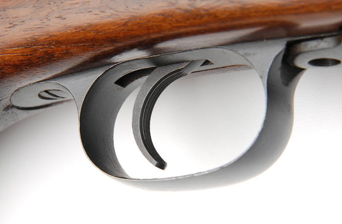 *SPRINGFIELD 1903 NRA MARKED T-SERIES TARGET RIFLE. SN 1311395. Cal. 30-06. Fine heavy bbl match rifle with 30″ tapered heavy bbl, modified BAR front sight band with Winchester 17A front sight and a Lyman 48C receiver sight. Bbl & receiver ring are mounted with scope blocks. Rifle is mounted in a modified NRA Sporter stock with dbl crossbolts and a grooved bbl band. Floorplate is standard 1903 machined steel with the “N.R.A.” and flaming bomb stamps on front tang of floorplate. Trigger is modified military style without over-travel. Stock has a flat bottom pistol grip with NRA Sporter/M1922 curved, checkered steel buttplate. Bbl band is equipped with a sling loop with no provision in the butt stock for a rear sling loop, indicating that this may be an old replacement stock. Bolt body & handle are polished bright with a headless cocking piece. These wonderful target rifles were produced in very limited quantities only in the period 1929-1932 with the last Style T rifle sold in 1935, although bbls & barreled actions were available until 1940. Records at the DCM are somewhat sketchy but a search of the records might prove useful in determining where this rifle was shipped and to whom. These great rifles were designed for accurate shooting out to 1,000 yards and were used successfully for many years, well into the 1950s for international match shooting. PROVENANCE: Dr. Leonard Goldfarb Collection CONDITION: Fine to very fine. Bbl retains most of an old restored finish, thin in a few spots. Receiver retains a thin military blue finish and trigger guard & floorplate most of their orig dark military oxide finish. Stock is sound and retains most of a fine custom finish. Mechanics are crisp, bright shiny bore. 4-41205 JWK36 (3,000-6,000)