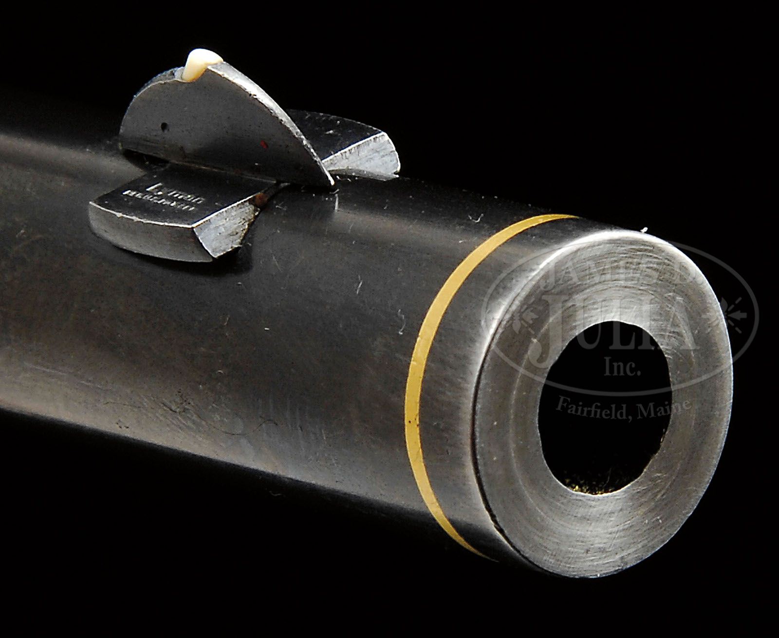 *EXTRAORDINARILY RARE SPECIAL ORDER ENGRAVED DELUXE WINCHESTER MODEL 1894 LEVER ACTION RIFLE INSCRIBED TO MILLARD P DUELL. SN 308993. Cal. 32 WS. Very rare special order ’94 with 26″ oct to rnd bbl, half magazine, takedown, with Lyman ivory bead hunting front sight, semi-buckhorn rear sight and Lyman locking combination tang sight. Mounted with about 3-4X very highly figured, center crotch, flame grain American walnut with style “A” carved forearm & capped pistol grip stock with smooth steel shotgun buttplate. Left side of lower tang is stamped with the assembly number “1178”, “X” and “SC”. There is also a tiny “61”. The matching assembly number is on the rear face of buttstock, under the buttplate, along with “94” and an obliterated assembly number. Matching assembly number is also found inside toe of buttplate. A reasonable assumption would be that this rifle was initially designated with a pistol grip stock and lightly figured wood, however when the order was placed for the highly decorated & plated rifle we see today, the wood would have been exchanged for much fancier type for the much higher decoration. Receiver is beautifully engraved in style “4” by John Ulrich and is signed on the lower tang behind the trigger. Lower tang is also engraved in period script “Millard P. Duell”. Engraving consists of a very large panel of a hunter shooting from behind a tree with two wounded bull elk in the foreground, all in a forest scene on the left side and a grizzly bear in a mountain scene on a promontory on the right side all surrounded by foliate arabesque patterns and wavelet borders. Top & bottom of receiver, top & bottom tangs, hammer, lever, takedown ring, forend cap, buttplate tang and exposed flats of bbl over chamber area are engraved to match. Base of bbl, at the receiver and around the muzzle are inlaid with gold bands. Receiver, takedown ring, forend cap & buttplate are all gold plated. Accompanied by several Winchester Museum, Buffalo Bill Historical Center & Cody Firearms Museum letters dating 1971, 1982 & 2008 which all provide the identical information which identifies this rifle in 32 WS caliber with half oct bbl, half magazine, plain trigger, “clover leaf rear, Lyman front, Lyman rear” sights, takedown, engraved $24.00, #4 and gold trim, received in warehouse March 27, 1907 and shipped same day to Order #93543, repair & return on June 29, 1917. Note: A cloverleaf sight is described in The Winchester Book, Madis, as a style “28” which is a semi-buckhorn style as found on this rifle. The sight currently on this rifle is of a later vintage with smooth edges rather than the serrated edges of the 1917 era when this rifle was most likely restored. This rifle is pictured, on p. 172 with three photographs, in the book Winchester Engraving, Wilson. The caption details mostly only the information found in the letter and states that when the rifle was returned & repaired in 1917 “at which time the inscription on lower tang was engraved”. PROVENANCE: Lloyd Goff Collection; Glenn Hockett Collection; Wes Adams Estate Collection. CONDITION: Very fine as restored. Overall retains about all of a factory-style restored finish to both metal & wood; bbl & magazine tube retain 97-98% strong, factory-style blue with only light muzzle & sharp edge wear; receiver, takedown ring, forend cap & buttplate retain most of their strong gold plating with some light flaking on top right edge of the receiver; lever & hammer retain brilliant case colors; wood is sound with a few, very minor nicks & scratches and retains about all of its fine restored finish. Mechanics are crisp, brilliant shiny bore. 4-44372 JR15 (20,000-40,000)