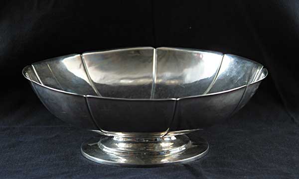 LARGE STERLING SILVER TROPHY BOWL PRESENTED TO CLYDE PANGBORN, PILOT OF THE FIRST NON-STOP FLIGHT ACROSS THE PACIFIC. This wonderful trophy is engraved “Presented to Clyde Pangborn by the City of Titusville, Penna. Oct. 28, 1931”. This presentation was made in honor of Pangborn’s recent non-stop flight across the Pacific Ocean. Pangborn and Hugh Heroundon Jr. made the flight in 41hours and 13 minutes crossing from Japan to Wenachee, Washington on October 5th, 1931, after many delays, including a large fine levied by the Japanese government because the duo flew over a military area and took photos without permission. The floriform bowl is 11-5/8” in diameter and about 4” high. It is marked “HAND MADE, JOEL F. HUGHES, STERLING” on the bottom. The base is quite massive, the lip of the foot being over 1/8” in thickness. CONDITION: The inscription is a bit soft from polishing, and there are some scratches here and there but otherwise very good. A very rare opportunity to own a tribute to aviation history. 4-49243 (2,800-3,300)