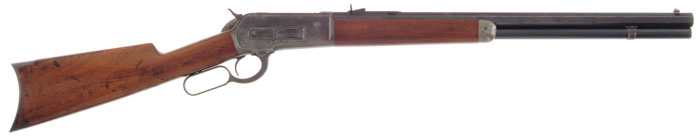 RARE WINCHESTER MODEL 1886 SHORT RIFLE. Cal. 38-56. SN 105754. Standard grade rifle with 22″ oct bbl, full magazine, half nickel front sight with screw & semi-buckhorn rear sight mounted at 3-3/8″ from receiver necessitating placement of caliber marking on left top flat instead of top flat. Mounted with uncheckered, straight grain, American walnut with straight stock & crescent buttplate. It has 8-3/8″ forearm. Accompanied by two Cody Firearms Museum letters, one dated 2001 and other dated 2004. Both have exact same information, completely identifying this rifle & indicating shipment Nov. 16, 1895. Also accompanying is a letter signed by Kenneth Cole Jones, transferring ownership on March 15, 2001. In the letter he states that this rifle was ordered by his great-grandfather, Charles Kelly, of Miles City, Montana. He states that Mr. Kelly used this rifle from about 1896 to about 1907 or 08 when he retired and moved to Long Beach, California. It passed down the family to Mr. Jones in 1992, who then sold it. CONDITION: Very fine. Bbl & magazine tube retain most of their strong, orig, factory blue with two or three rubs on end of magazine tube & light edge wear on bbl. There is a series of small nicks on a couple of edges about mid-point. Receiver retains 75-80% faded case colors, stronger in sheltered areas with top & bottom edges turned silver. Stock has a scrape on left side of wrist with a series of gouges on left side of comb, with a few light bruises, nicks & scratches elsewhere. Forearm has a few light nicks, scratches & bruises and all wood retains most of its orig factory varnish, dull on forearm. Mechanics are crisp, strong bright bore with some orange peel roughness in grooves. 4-58880 JR162 (13,000-17,000)