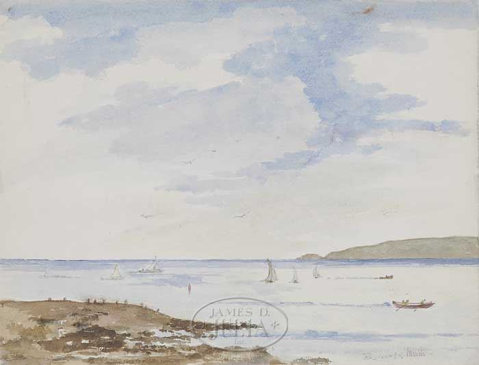REGINALD MARSH (American, 1898-1954) OCEAN VIEW. Unframed watercolor shows a view of sailboats and other boats on a calm sea with foreground shoreline and distant hill. Pencil signed lower right. SIZE: 9-1/4″ x 12″. CONDITION: Very good. 9-26106 (2,000-3,000)