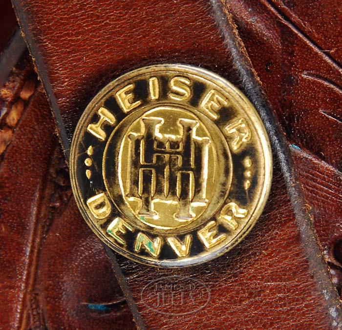 *EXTREMELY RARE ABERCROMBIE & FITCH MARKED LUGER WITH BEAUTIFUL A&F HOLSTER. SN 2879i. Cal. 30 Luger. Extremely rare DWM commercial Luger (only 100 made) with 4-3/4″ bbl, DWM scroll on front toggle link, Geniva cross & sunburst over chamber & marked in two lines “MADE IN SWITZERLAND / ABERCROMBIE & FITCH CO NEW YORK” on top of bbl. It has proper reinforced rear frame well. Left side of extractor is marked “GELADEN” & thumb safety is unmarked, polished bright when lever is in SAFE position. Mounted with full checkered walnut grips & a correct unnumbered wood base magazine. Also accompanied by a foliate & floral tooled H.H. Heiser holster with buckstitch laced rear seam, full leather lined with Cheyenne plug, marked on back of belt flap in a round cartouche “ABERCROMBIE & FITCH CO. / NEW YORK” with the Abercrombie & Fitch logo in center. Altogether a rare & beautiful Abercrombie & Fitch set. PROVENANCE: Doug Smith Collection CONDITION: Extraordinarily fine, all matching parts that are supposed to be numbered. Overall retains about 99%+ strong orig factory blue & about 99% orig strong straw colors. Grips are extremely sharp with beautiful wood grain showing through. Magazine is extremely fine & near new. Crisp mechanics, brilliant shiny bore. Holster is exceptional with very minor wear & scuffs. 4-36101 JR196 & BS (12,500-17,500)