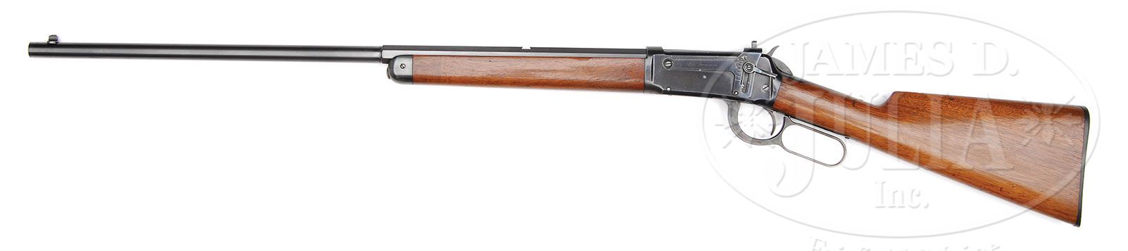 SCARCE SPECIAL ORDER WINCHESTER MODEL 1894 LEVER ACTION RIFLE. SN 47410. Cal. 30 WCF (30-30). Standard grade rifle with 26″ oct to rnd bbl, button mag, Lyman ivory bead front sight, no rear sight, and a Lyman 21 receiver sight. Mounted with uncheckered, straight grain American walnut with straight stock and Winchester hard rubber buttplate. Accompanied by a Cody Firearm Museum letter which identifies this rifle, as found, received in warehouse Sept 21, 1898 and shipped the same day to order number 4791. Presumably it had a rear sight when it left the factory. PROVENANCE: Wes Adams Estate Collection. CONDITION: Extremely fine, bbl retains 98-99% strong orig blue with a couple small nicks and it’s missing rear sight. Forend cap retains 97-98% glossy orig blue. Receiver retains 96-98% strong orig blue with sharp edge wear, some slight thinning on bottom and one area of light surface rust. Lever and hammer retains strong, bright case colors, lightly faded on outer faces of lever. Wood is sound with a few minor handling and storage nicks and scratches and retains virtually all of its strong orig factory varnish. Mechanics are crisp, brilliant shiny bore, shows very little use. 4-44389 JR63 (3,000-5,000)