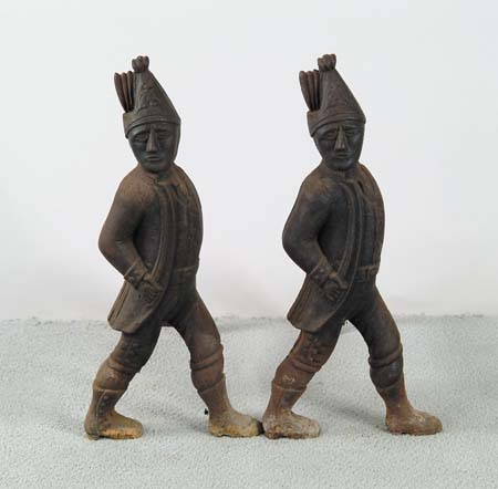 PAIR OF CAST IRON HESSIEN SOLDIER ANDIRONS. Unpainted surface. SIZE: 20” h. CONDITION: Some rust, generally in good condition. 9-96316 (200-300)