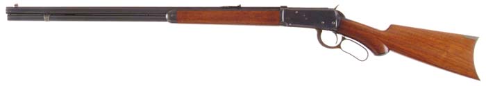 *RARE SPECIAL ORDER SEMI-DELUXE WINCHESTER MODEL 1894 LEVER ACTION RIFLE. Cal. 30 WCF (30-30). SN 221350. Special order rifle with 26” oct bbl, half nickel front sight with screw and 3-leaf platinum line express rear sight. Mounted with very nicely figured, straight grain, uncheckered, American walnut with capped pistol grip stock & crescent buttplate. Left side of lower tang is stamped “18945R”. The top tang channel of the buttstock is unmarked. Butt is stamped “1836” under the buttplate and has the pencil notation in script “Bought 1909 / LAC / $21.50”. CONDITION: Very fine plus. Bbl & magazine tube retain 96-97% strong bright orig blue, slightly thinned on forend cap. Receiver retains 95-96% strong, bright orig blue with only sharp edge wear, slight thinning on bottom and a couple of small scratches on right side. Tangs retain most of their orig blue. Lever retains 50-60% faded case colors and the hammer about 80% with the buttplate retaining 85-90% faded colors. Stock has a tiny chip by the top right side at the receiver, otherwise wood is sound and retains virtually all of its orig piano varnish finish with minor nicks & scratches and some dulling on bottom of forearm. Mechanics are fine, very bright shiny bore. Even though the numbers are not matching on the stock, it is readily apparent that this is the orig stock to the rifle. 4-31041 JR513 (4,000-7,000)
