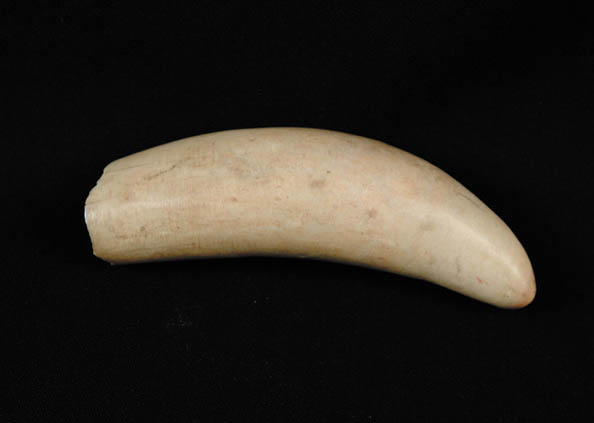 UN-ENGRAVED WHALE’S TOOTH. Found in Cape May, New Jersey. Old tooth has never been decorated. SIZE: 5-1/4”. CONDITION: Cracks up from base, longest is 1-1/4”. 9-94345-509 (150-250)