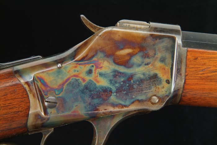 FINE WINCHESTER HIGH WALL SPORTING RIFLE. Cal. 25 WCF (25-20). SN 41287. Fine, light sporting rifle with 28” No. 1 weight oct to rnd bbl, Beaches gold washed, combination front sight, semi-buckhorn rear sight and a Lyman loop, s-code tang sight. Mounted with uncheckered, straight grain, American walnut with black insert, semi-schnable tipped forearm & straight stock with crescent buttplate. This rifle is somewhat unusual in that it was made in 1889 but undoubtedly delivered at a later date as the cartridge was reportedly not developed until the early 1890’s. CONDITION: Extremely fine, near new. Retains virtually all of its wonderful, orig factory finish to both metal & wood with bright blue on the bbl & brilliant case colors on receiver. Lever retains most of its orig case colors, brilliant on sides, fading on outer edge. Buttplate retains 65-70% faded case colors, mixed with light surface rust. Wood is sound with a couple of small scratches on buttstock and light handling & storage marks. Mechanics are crisp, brilliant shiny bore. This is a little-used high wall in a hard to find caliber. 4-30395 JR306 (4,500-7,500)