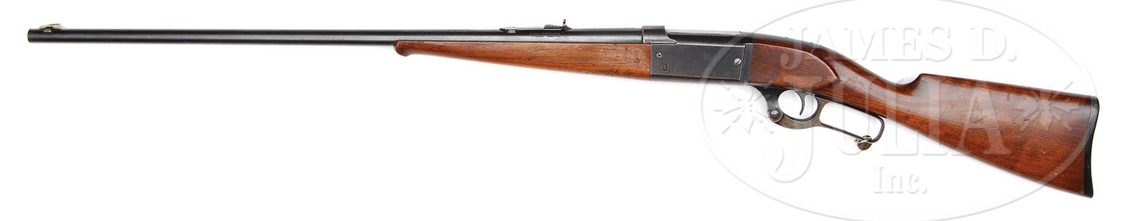 *RARE SAVAGE M1899 SMOOTH BORE RIFLE. SN 136950. CAL 38-55. Factory Savage records indicate this gun was originally ordered as a smooth bore shotgun in Cal 38-55 with a 28″ full rnd bbl with silver blade front sight and standard Savage rear sight. Original straight-grain walnut stock with a composition shotgun style buttplate. Guaranteed all-original complete with factory letter indicating all of the above features. PROVENANCE: George Adams; LeRoy Merz; Wes Adams Estate Collection. CONDITION: Overall gun is in generally fine condition with original front and rear sights. 85-90% original blue remaining turning to a plumish coloration. Excellent case colors on the lever. Original stocks are in very good condition with the usual light mars and dings. Bright shiny bore. It is the cataloger’s opinion that this gun would have been definitely been order by a exhibition shooter, and it is the only one I have ever heard of or encountered in the smooth bore configuration. 4-44787 LM76 (3,500-4,500)