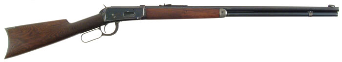 *WINCHESTER MODEL 1894 LEVER ACTION SPORTING RIFLE. SN 881025. Made in 1921. 32-40 Cal. 26” rnd bbl. Standard 2-line markings on the upper left part of the bbl above the forearm tip. Crescent buttplate. Marble/Sheard copper bead front sight. Standard elevator type rear sight. CONDITION: 80% blue on the bbl and magazine tube. Thinning on top of the bbl. 50% blue on the action. 40% casehardening colors on the lever and hammer. Mostly silvered out on the buttplate. Action is good. Bore is lightly pitted. Goforth Collection 4-60583 FS765 (1,500-2,000)