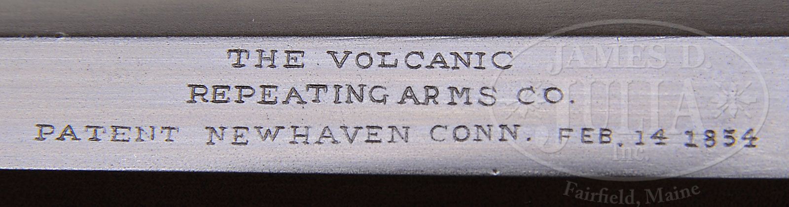 SCARCE VOLCANIC ARMS NAVY LEVER ACTION PISTOL. SN 2445. Cal. 41. Usual configuration with 6″ oct bbl that has integral magazine and full side ribs, brass pin front sight and fixed rear sight in the top flat of receiver. Top flat of bbl has crisp three line Volcanic Arms address and patent date. Mounted with smooth, varnished two piece walnut grips matching numbered to the pistol. Serial number was observed on the right side of the butt strap, under the grip, inside each grip, inside each side plate, on the lever, both links and twice on the firing pin. No additional disassembly was checked for additional matching numbers. According to Flayderman’s Guide to Antique American Firearms there were about 1200 of these rare pistols produced in the period 1855-1857 making it one of the more rare and desirable volcanic pistols. These pistols, with their self-contained cartridge had limited success with the buying public and were short lived on the market, and in 1857 became the New Haven Arms Co. In about 1860 this design morphed into the Henry rifle which was purchased by Oliver Winchester, ultimately becoming the Winchester Repeating Arms Co., and as the saying goes, the rest is history. Accompanied by a 3-page letter from renowned Winchester authority and author, George Madis, wherein he describes and authenticates this pistol. PROVENANCE: Barnes Family Collection. CONDITION: Fine plus, all matching; bbl and mag tube retain a fine, smooth blue-brown patina with traces of strong blue in the most sheltered areas; frame and side plates show light sharp edge wear with some light dings on the front side flats and overall retain a wonderful dark mustard patina; hammer retains smoky case colors and lever a gray metal patina; grips show light battering on the bottom edges with a chipped left heel and overall retain about 90% original varnish; mechanics are fine; strong bright bore with a few small spots of pitting. 4-47616 JR205 (10,000-15,000)