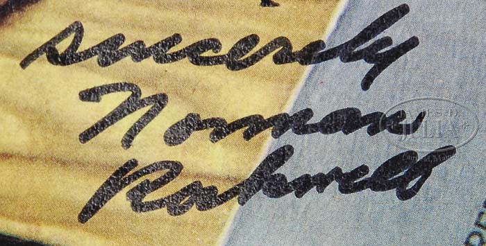 NORMAN ROCKWELL (American, 1894-1978) SIGNED SATURDAY EVENING POST MAGAZINE. Fascinating Normal Rockwell item. The original Saturday Evening Post magazine from March-April 1973. The cover by Norman Rockwell, the interior the Four Freedoms, each hand signed “Sincerely, Norman Rockwell”. SIZE: 13-1/4″ x 10-1/4″. CONDITION: Very good. 9-23834 (3,000-5,000)