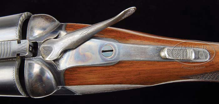 *OUTSTANDING PARKER VHE GRADE SIDE BY SIDE SHOTGUN. SN 209365. Cal 12 ga. 30″ bbls with matted concave rib, sgl silver sighting bead, FULL/FULL chokes, 2-3/4″ chambers, ejectors and dbl triggers. Top rib is marked “PARKER BROS. MAKERS.MERIDEN.CT.U.S.A. VULCAN STEEL”. The “2” size frame is standard “V” grade engraved with zig-zag border along edges and around screws and “PARKER BROS.” on both sides. Mounted with straight grain walnut, checkered pistol grip, Parker hard rubber grip cap, Parker Brothers dogs head buttplate, blank gold initial shield and checkered splinter forend. Bore diameter: left -.734, right -.734. Bore restrictions: left -.040, right -.035. Wall thickness: left -.035, right -.034. Drop at heel: 2-1/2″, drop at comb: 1-1/2″. Weight: 7lbs. 13oz. LOP 14-5/16″. The book Parker Gun Identification & Serialization does not show the SN. CONDITION: Extremely fine. Bbls retain 98% orig blue, with minor wear at muzzle, a few minor nicks & tiny scratches. Receiver retains 80-85% strong orig case colors, mostly on sides and across top with bottom thinning and blending with silver and brown patina. Trigger guard has mostly flaked and remains a mix of silver/brown patina. Stock is sound with nice checkering, some usual light nicks & dings and retains most of its orig finish. Forend is sound with fine checkering, some minor nicks & dings, and retains most of its orig finish. Exposed metal parts of forend have faded and worn to a silver patina. Mechanics are crisp with auto-safety, strong ejectors and bright shiny bores. 4-40080 BDT43 (4,000-7,000)
