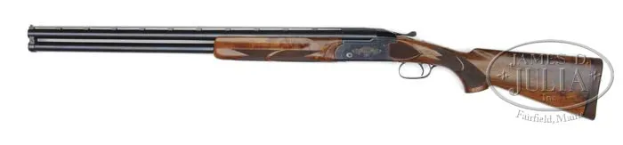 *REMINGTON 3200 COMPETITION FOUR BARREL SKEET SET. SN OU.46594. Cal. 12, 20, 28 & 410 ga. Bbl sets 27-1/2″ with serrated vent rib, white front and silver center sighting beads, 2-3/4″ chamber except the 410 which is 2-1/2″, SK/SK choke, safety and selector have been removed, automatic ejectors. Bbls marked on left side with gauge and shell size and “REMINGTON ARMS” on right side. Receiver is marked on both sides “COMPETITION” with scroll bordering, all with gold fill. Bottom of frame is marked “REMINGTON/3200/OU.46594” showing that the gun has factory update. Mounted with nicely figured walnut, checkered side panels, checkered pistol grip with ribbon, brown “REMINGTON” marked recoil pad, checkered fluted beavertail target forend. Set 1) 12 ga – Bore diameter: top – .730, bottom – .729. Bore restrictions: top – .005, bottom – .004. Wall thickness: top – .038, bottom – .030. Drop at heel: 2-1/4″, drop at comb: 1-1/2″. Weight: 8 lbs. 13 oz. LOP 14″. Set 2) 20 ga – Bore diameter: top – .620, bottom – .619. Bore restrictions: top – .004, bottom – .004. Wall thickness: top – .039, bottom – .043. Drop at heel: 2-1/4″, drop at comb: 1-1/2″. Weight: 8 lbs. 13 oz. LOP 14″. Set 3) 28 ga – Bore diameter: top – .554, bottom – .552. Bore restrictions: top – .005, bottom – .004. Wall thickness: top – .045, bottom – .043. Drop at heel: 2-1/4″, drop at comb: 1-1/2″. Weight: 8 lbs. 12 oz. LOP 14″. Set 4) 410 ga – Bore measurements N/A – Drop at heel: 2-1/4″, drop at comb: 1-1/2″. Weight: 8 lbs. 12 oz. LOP 14″. Accompanied by a Nasco aluminum All American case. CONDITION: Very good. All bbl sets retain 95% plus orig blue with some minor nicks and scratches and rubbing from forend. Rib on 410 set has shallow dip behind center bead. Receiver retains 95% orig blue with some minor nicks and scratches and light thinning on sharp edges. Stock is sound with 2 tiny hairline crack behind top tang, good checkering, some minor nicks and scratches and wear to pistol grip to the orig finish. Forend is sound with good checkering, some minor nicks and scratches and retains most orig finish. Case is sound with some exterior minor scuffing and solid interior. 4-40562 BDT29 (3,500-5,500)