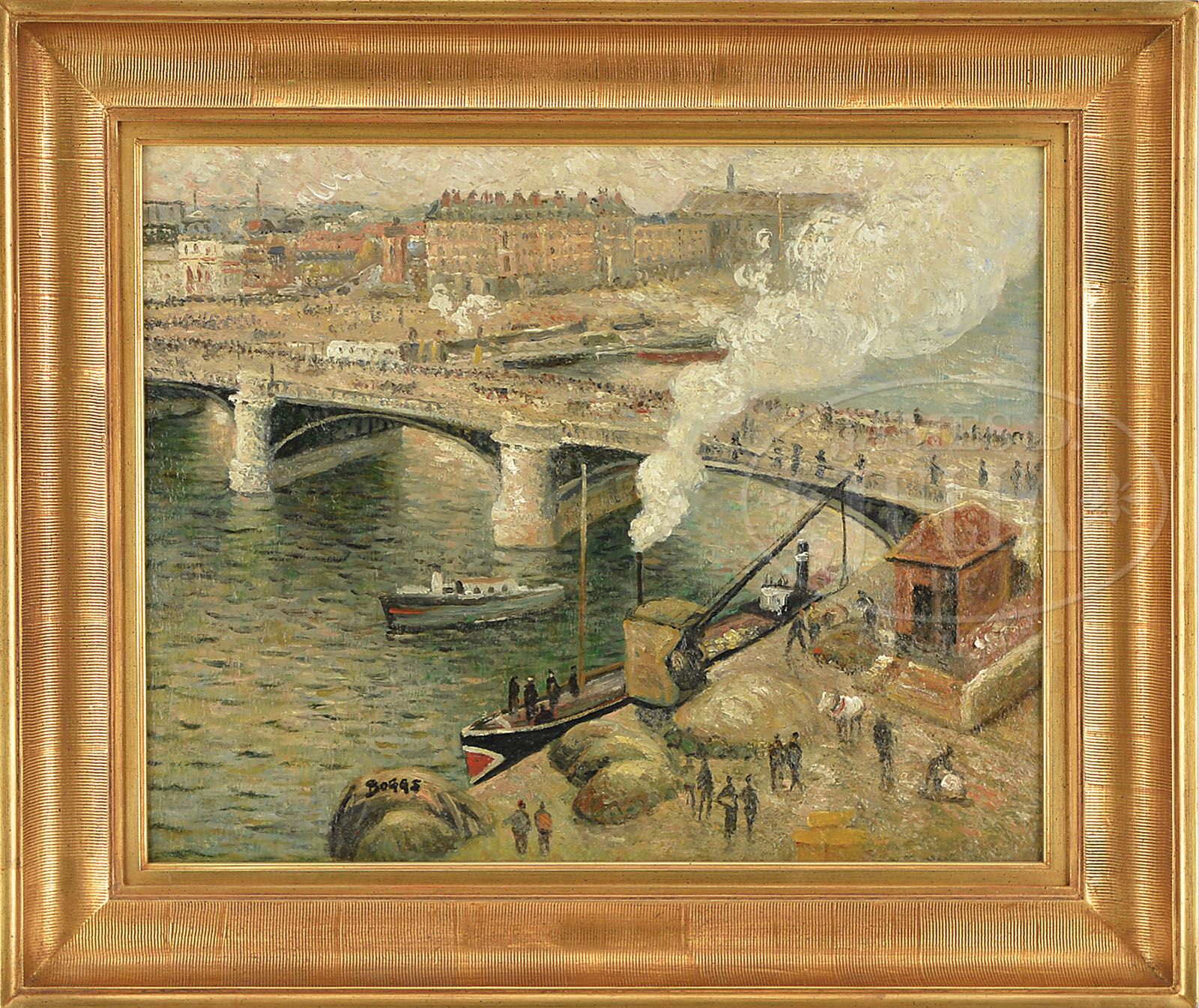 FRANK MYERS BOGGS (American, 1855-1926) LE PONT BOIELDIEU A ROUEN, EFFET DU MOUILLE. Oil on canvas Housed in a fine modern gilt frame with gilt liner Signed lower left “Boggs” SIZE: 19-1/4″ x 24″. Overall: 26″ x 31″. CONDITION: Lined on replaced stretcher, inpainting, very good. 9-29433 (8,000-12,000)