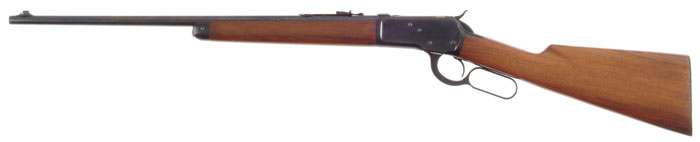 *WINCHESTER MODEL ’53 LEVER ACTION RIFLE. Cal 25-20. SN 980183. Standard grade rifle with 22″ tapered rnd bbl, pedestal mounted Lyman brass bead front sight & flat top rear sight. Mounted with uncheckered, straight grain American walnut with straight stock and serrated steel buttplate. CONDITION: Appears to be new and unfired retaining virtually all of its orig factory finish to both metal & wood. Stock has a couple of small dings near toe and one or two handling & storage marks elsewhere. Mechanics are crisp. Brilliant shiny bore. Bolt face retains virtually all of its orig factory blue. Appears to be an unfired rifle. 4-58931 JR201 (3,500-5,000)