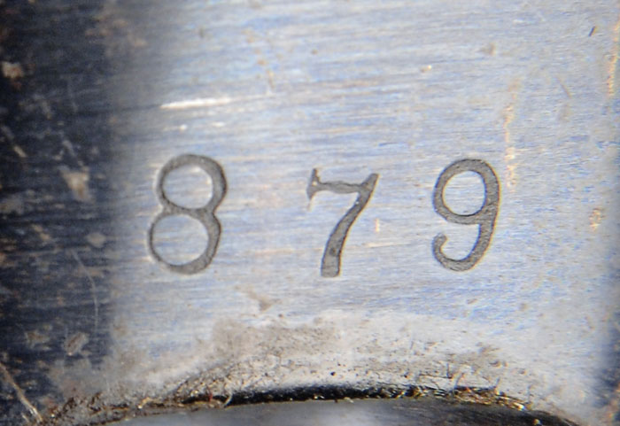 DELUXE SPECIAL ORDER BULLARD LARGE FRAME LEVER ACTION RIFLE. Cal. 45-70. SN 879. Beautiful deluxe rifle with 28-3/16″ oct to rnd bbl, half magazine, ivory bead combination front sight, Lyman 6A folding 2-leaf rear sight & Lyman tang sight with loop. It has standard late markings on left side of receiver by ejection port without the Model 1886 marking on right side. It has caliber marking over receiver ring & serial number back of hammer slot. Serial number also found inside tips of top & bottom tangs & on face of buttstock inside action. Mounted with very highly figured, checkered American walnut with pistol grip stock, serpentine grip cap & Bullard hard rubber buttplate with an elk. CONDITION: Very fine to extremely fine, all matching. Bbl retains 96-97% strong, bright, original, factory blue with minor edge wear, some thinning on edges of octagonal area & a small scratch or two. Magazine tube retains about 92% strong orig factory blue & forend cap about 95% glossy orig factory blue with some flaking. Receiver retains most of its glossy orig factory blue with a few light scratches, striation marks & some flaking over front top section. Dust cover is flaked to about 60% bright blue. Lever retains strong, bright case colors on sides & hammer about 90% dull case colors. Stock has a tiny hairline on left side of wrist at receiver, otherwise wood is sound with minor handling & storage marks and retains about all of its orig factory varnish. Buttstock is a slightly different color from forearm but there is no evidence of refinishing. Mechanics are smooth & crisp, brilliant shiny bore with a tiny sport or two of orange peel roughness. 4-58922 JR277 (10,000-15,000)