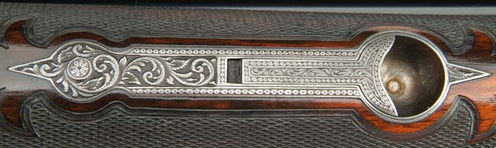 *NEAR MYTHICAL LOST CZAR OF RUSSIA PARKER A1 SPECIAL GRADE DOUBLE BARREL SHOTGUN. Cal. 12 ga. SN 168304. Built on a No. 2 frame, this spectacular shotgun has 32″ Whitworth steel bbs choked FULL/FULL with tapered, concave matted rib, sgl bead, doll’s head rib extension, ejectors & gold washed, checkered dbl triggers. Mounted with very highly figured, replacement checkered, straight stock with skeleton buttplate, 15″ LOP. Splinter forearm is orig to this shotgun with superb full coverage, very fine checkering & fleur-de-lis carved patterns. Water table has usual markings of “A1S” in a trapezoid surmounted with a small “S”, which is all above the serial number. Below the serial number is the number “8”, followed by a matching small “S”, probably indicating a Grade 8 with special features. Receiver and all appended metal parts are all spectacularly engraved in deep relief foliate & floral arabesque patterns with triggerguard and about 2-1/2″ over chambers engraved to match. Muzzles have a narrow engraved pattern. Fences have a very deep relief fleur-de-lis on each side with three raised ribs around rear edges. The tiny thumb pad on opening lever is pierced carved. The skeleton buttplate is orig Parker equipment and fully engraved, but not in matching patterns and has serial number “230959” inside toe. Stock has a large gold initial oval engraved “H.S.”, the initials of the gentleman who originally bought this shotgun from Parker Bros. Accompanied by a 2-page typewritten orig letter on “The Parker Gun” letterhead stationery dated December 16, 1915, addressed “Dear Hal” and signed by Wilbur F. Parker, Jr. The body of letter acknowledges payment for the “Czar Gun” and wishes him success on his trip to Canada and regrets that he has not yet had an opportunity to shoot the “Czar Gun”. The central paragraph states “This gun which you purchased was originally ordered by the officers of the staff of the Czar of Russia, to be presented to him by them. The gun was ordered from Parker Bros., to be absolutely first class in every respect, and of our highest grade. The gun was shipped from here by express in July, 1914, but before the Express Company was able to forward it from New York, war broke out in Europe, and the gun was returned to us. After keeping it for several months, – being unable to get in touch with the people in Russia who had contracted for the gun, we decided to sell it, and are pleased to know that you are the possessor of this splendid gun. It certainly is a work of art, and has, in our opinion, few, if any equals in this country today.” The letter goes on with a small sales pitch and personal regards from the writer indicating a personal friendship. Also accompanying is a small certificate from The Whitworth Company of Manchester, England, dated February 12, 1912 to Parker Bros. stating that two sets of bbls, Nos. 45649 & 45650 were manufactured with Whitworth Fluid Pressed Steel. No. 45649 is the number of the bbls on this shotgun. Bottom of note is overstamped by Parker Bros. certifying that gun No. 168304 was made with above tubes. Additionally accompanying are four orig Parker Bros. hang tags, two of which give specifications for this shotgun. The other two are instructional in content. Also accompanying is the orig envelope from the orig purchaser, upon which is written in grease pencil, “PARKER GUN WHITWORTH GUN CERTIF.” Additional accompaniment is a 2-page Parker Gun Collectors Association letter fully identifying this shotgun as above and incorporating all of the order book information as listed above. Further included are five pages of copies of the Parker order books detailing the information regarding this shotgun as reported above. On pp. 658-666 of Vol. II, The Parker Story, Gunther, Mullins, Parker, Price, Cote, details all of the known information regarding this shotgun. Authors state that it was ordered March 5, 1914 by a Col. Tarnovski, as found in Order Book #91, p. 78, Order #138479, dated March 6th. The order was from O.R. Dickey of Wellington, Massachusetts. The price was $375.00 for shotgun plus $18.75 for ejectors. This was the cost of an A1 Special at that time, having been reduced from previously higher price of $500.00. This section also deals with the apparent misconception of the configuration of the Czar of Russia Parker as related in the 1961 book, Parker, America’s Finest Shotgun, Peter H. Johnson, wherein Mr. Johnson had relied on word of mouth descriptions from various employees as to the actual configuration, which the authors of The Parker Story have completely debunked. This section further clarifies the confusion regarding the shipping of this shotgun on July 30, 1914, to the Russian/American lines on Pier 5 in Brooklyn, NY. The shotgun was subsequently returned to Parker Bros., apparently because WWI had broken out and for whatever reason, the shotgun did not make its way onto a ship bound for Russia. The Johnson book states that the stock & forearm were gold inlaid and that the Russian crest with 2-headed eagle was inlaid in gold on the trigger bow. One of the notes on p. 78 of the Order Book states “Dickey suggests no gold plated triggers or gold in trigger bow” which further debunks the Johnson story as probably selective or creative memory by former employees as related thirty to forty years after the actual manufacture of the shotgun. Reading the complete section in The Parker Story coupled with the orig letter that accompanies the shotgun leaves no doubt that this is the orig and only “Czar of Russia” Parker shotgun. Page 456 of Parker Gun Identification & Serialization lists this shotgun as a Grade “W7” with remaining features as found on the shotgun. Grade W7 indicates a AAH Grade shotgun with Whitworth Steel bbls rather than the A1 Special which this shotgun undoubtedly is. The explanation for the error in the book, Parker Gun Identification & Serialization is from 