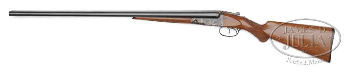 *PARKER BROTHERS VH 16 GAUGE ON 0 FRAME. SN 149856. Cal. 16 ga. 2-1/2″ Chambers. 28″ Barrels. Standard configuration gun has all correct markings. Parker Serialization ledger entries match all aspects of this lightweight classic. Plain American walnut semi-pistol grip buttstock measures 14-3/8″ over Parker composition buttplate. Gun has typical splinter forend. Bore diameter: left -.662, right -.661. Bore restrictions: left -.014, right -.003. Wall thickness: left -.028, right -.025. Drop at heel: 2-1/4″, drop at comb: 1-3/8″. Weight: 6 lbs. 3 oz. LOP 14-3/8″. CONDITION: Excellent, as completely refinished. Bbls retain nearly all of satin re-blue with one or 2 minor marks. Action retains nearly all of its cyanide case color, engraving slightly washed. Trigger guard, top lever, and safety button retain nearly all of a re-blue, again with soft engraving. Stocks retain nearly all of correct varnish finish. There is a minor chip on toe of buttplate, and one or 2 very minor marks in wood. Checkering has been re-cut, and is sharp. Bores are bright and shiny with some minor frosting, and evidence of a couple dents being removed. Action is tight. Right bbl is slightly off face. A nice handling gun. 4-38867 MGM93 (1,000-2,000)