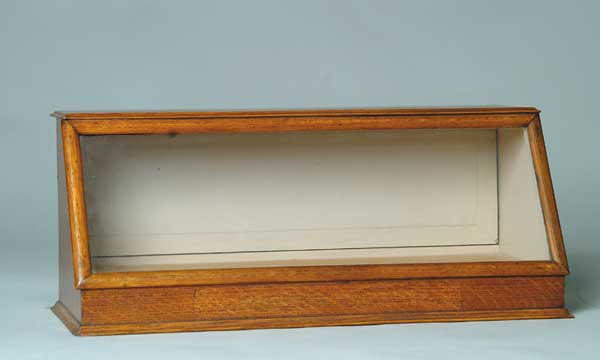 SMALL OAK SLANT FRONT SHOWCASE. Dark brown oak case with two velvet lined drawers and rear door. SIZE: 21 3/4″ l. x 9″ t. x 9 1/2″ d. CONDITION: Very good. 1-1835 (200-250) Auction: Advertising, Toy & Doll - Fall 2003 Please Note: All prices include the hammer price plus the buyer’s premium, which is paid by the buyer as part of the purchase price. The prices noted here after the auction are considered unofficial and do not become official until after the 46th day. |
