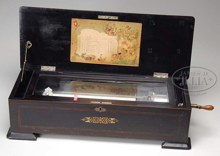 Lot Added: MERMOD 12-TUNE MUSIC BOX. Serial number 60,537. 13″ cylinder w/ crank. SIZE: 28″ l x 11″ d x 8″ h. CONDITION: Near excellent. 1-9458 AT (3,000-4,000) Auction: Advertising, Toy & Doll - Spring 2009 Please Note: All prices include the hammer price plus the buyer’s premium, which is paid by the buyer as part of the purchase price. The prices noted here after the auction are considered unofficial and do not become official until after the 46th day. |