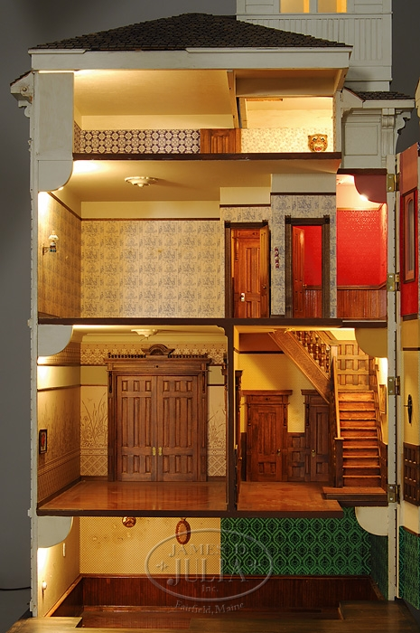 JIM MARCUS DOLLS’ HOUSE. Circa 1970. This doll house was one of the first dolls’ houses made by Jim Marcus. They were sought after and collector’s waited years to have one built. This one is a copy of a San Francisco Victorian-style house with its tall facade of bay windows, balconies, tower etc. which was entirely painted white. The intricate interior has finely carved architectural features such as grand paneling on walls, elaborate doorways and staircases. There are four levels in the main part of the house and a huge tower with a room with the tower being removable. The house is furnished with items of the period. The house is signed on the reverse “Jim Marcus 1970”. SIZE: 80-1/2″ t x 28-1/2″ w x 30″ d. PROVENANCE: From the Estate of Geraldine Gaba, Scottsdale, AZ. CONDITION: Very good. 1-8613 AM (2,500-3,500) Auction: Advertising, Toy & Doll - Fall 2008 Please Note: All prices include the hammer price plus the buyer’s premium, which is paid by the buyer as part of the purchase price. The prices noted here after the auction are considered unofficial and do not become official until after the 46th day. |