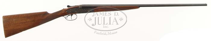 *FINE AYA MODEL 2 DBL BBL SHOTGUN. Cal. 410. SN 539846. Beautiful early dbl with 26-1/8″ bbls with screw chokes having been added. It has smooth concave tapered rib with sgl bead, dbl chopper lumps, ejectors & dbl triggers. Rib is marked with maker’s name & address & left bbl is marked “W.L. MOORE. AGOURA CA.” Receiver has hand detachable sidelocks with gold line cocked indicators. It has full coverage foliate arabesque pattern engraving with a rosette around cocked indicator & a large rosette with flower blossom around hinge pin. It has right hand trigger guard & top tang has “S” in gold. Mounted in nicely figured walnut with checkered semi-beavertail forearm & straight stock with raised teardrop side panels, 14-7/16″ over a checkered butt. Accompanied by three chokes: IMP-CYL, MOD & FULL. Drop at heel: 2-1/4″, drop at comb: 1-3/8″. Weight: 5 lbs. 7.04 oz. CONDITION: Extremely fine, as new. May be unfired. Retains virtually all of its orig factory finish to both metal & wood. Wood has one or two minor very light handling & storage marks. Mechanics are crisp, brilliant shiny bores. 4-57920 JR354 (2,000-3,000)