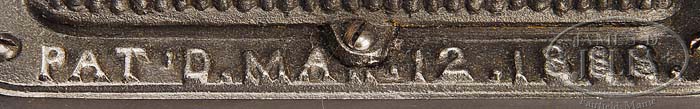 SALESMAN SAMPLE POT BELLY STOVE. Classic black cast iron wood stove with floral pattern in relief on three sides and nickel finial on top. Upper hemisphere has 4 eisenglass panel doors. Lower hemisphere has 4 additional smaller paneled doors. All resting on curved feet. Patented March 12, 1888. SIZE: 20-1/2″ h x 8-1/2″ square. PROVENANCE: Late John Woods Collection, St. Louis, MO. CONDITION: Very good to excellent. 1-9341 (800-1,200) Auction: Advertising, Toy & Doll - Spring 2009 Please Note: All prices include the hammer price plus the buyer’s premium, which is paid by the buyer as part of the purchase price. The prices noted here after the auction are considered unofficial and do not become official until after the 46th day. |