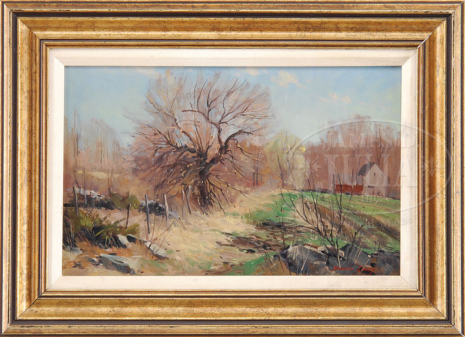BERNARD COREY (American 1914-2000) “OLD APPLE TREE”. Oil on masonite Signed lower right. Titled and signed on reverse SIZE: 10″ x 16″ Overall: 15-1/4″ x 21-1/4″ CONDITION: Very good 9-26782 (1,000-1,500)