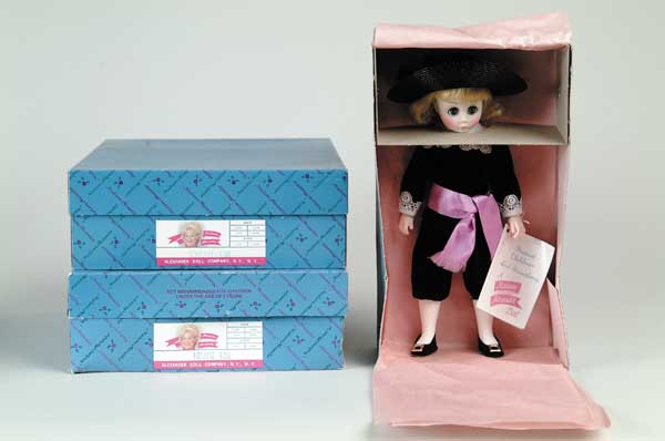 LOT OF THREE MADAME ALEXANDER DOLLS 1) Melanie, style #1386; 2) Scarlett, style #1385; and 3) Lord Fauntleroy, style #1390. SIZE: All three are 13″. CONDITION: All in original box. Very good. 1-149-642 (200-300) Auction: Advertising, Toy & Doll - Spring 2003 Please Note: All prices include the hammer price plus the buyer’s premium, which is paid by the buyer as part of the purchase price. The prices noted here after the auction are considered unofficial and do not become official until after the 46th day. |
