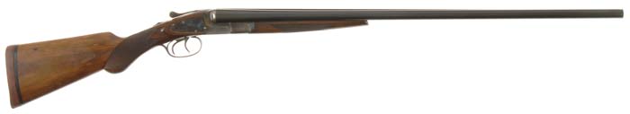*L.C. SMITH 00 GRADE DOUBLE BARREL SHOTGUN. Cal. 20 ga. SN 2771. Beautiful field grade double with 28” Armor Steel bbls choked MOD/MOD with tapered, concave, matted rib, sgl bead, crossbolt rib extension, extractor and dbl triggers. Mounted with nicely figured, checkered, American walnut with splinter forearm & semi-pistol grip stock, 13” over a solid red Noshoc pad. Lockplates have maker’s name on each side. Bore diameter: left – .618, right – .618. Bore restrictions: left – .018, right – .013. Wall thickness: left – .025, right – .023. Drop at heel: 2-1/2”, drop at comb: 1-5/8”. Weight: 5 lbs. 10.56 oz. CONDITION: Extremely fine. Bbls retain about 98% strong, orig blue with a minor nick or two. Receiver & lockplates retain most of their orig case colors, brilliant on lockplates and top of receiver and in sheltered areas, slightly faded on bottom and turning silver on bottom front. Triggerguard retains most of its orig blue. Wood is sound with a few light nicks & scratches and some heat or chemical crazing around wrist and overall retains 93-95% orig varnish. Mechanics are fine, bright shiny bores with a couple of small spots in right side. 4-30193 JR185 (1,500-2,500)