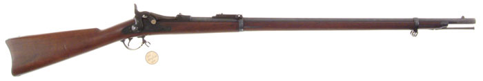 SPRINGFIELD MODEL 1884 TRAP DOOR RIFLE. SN 339024. 45/70 Cal. 32-5/8” rnd bbl. Model 1873 low arch breechblock, Buffington sight. CONDITION: Excellent. Bright blue on the bbl and bright casehardening on the breechblock, brilliant on the tang. Stock has minor handling marks. Action is excellent. Wm. Hancock Collection 4-58598 FS708 (2,000-2,500)