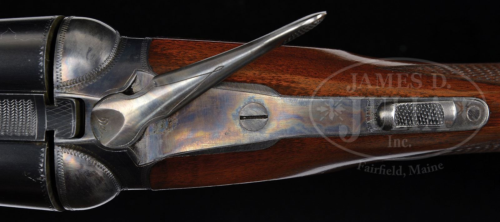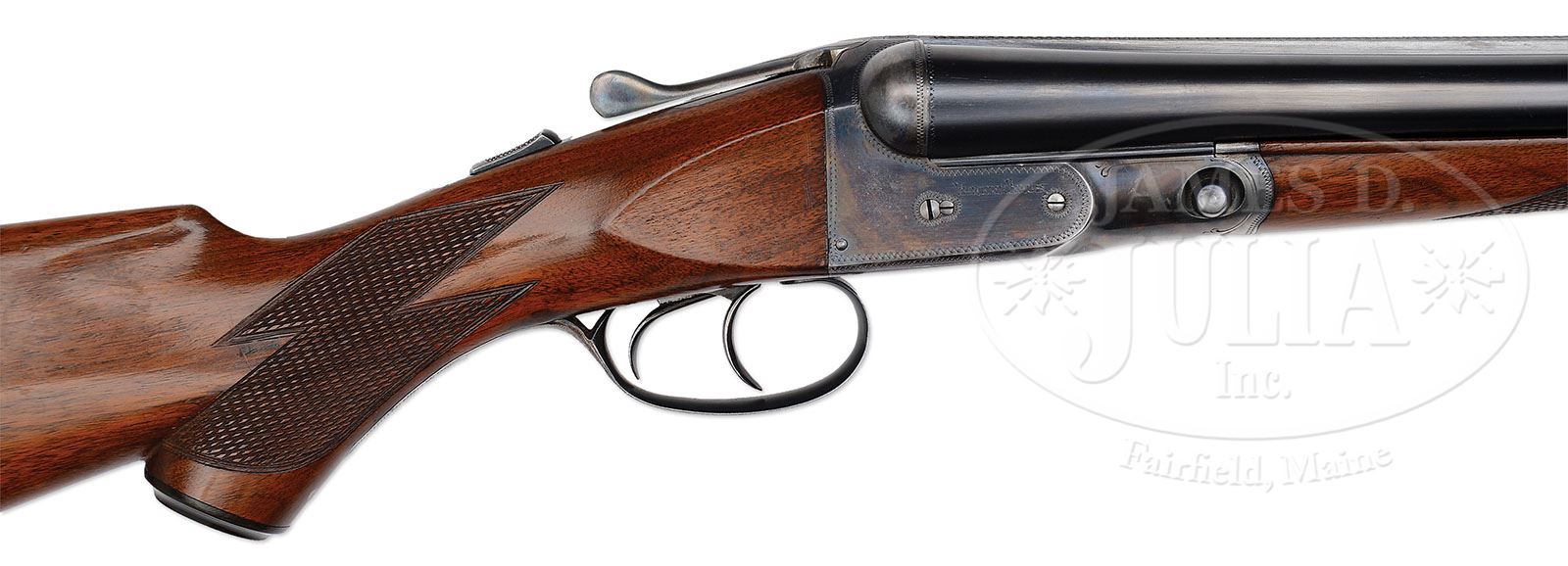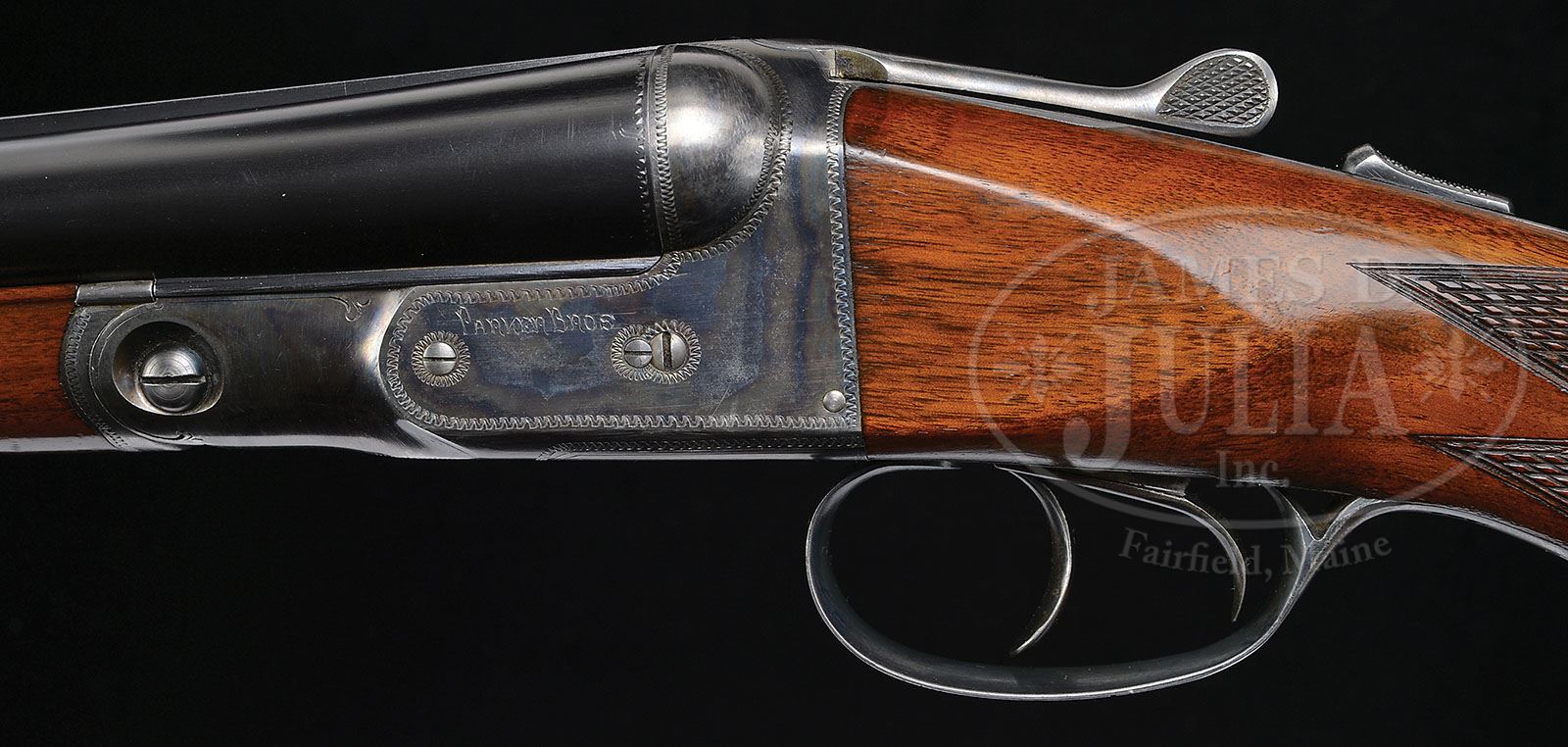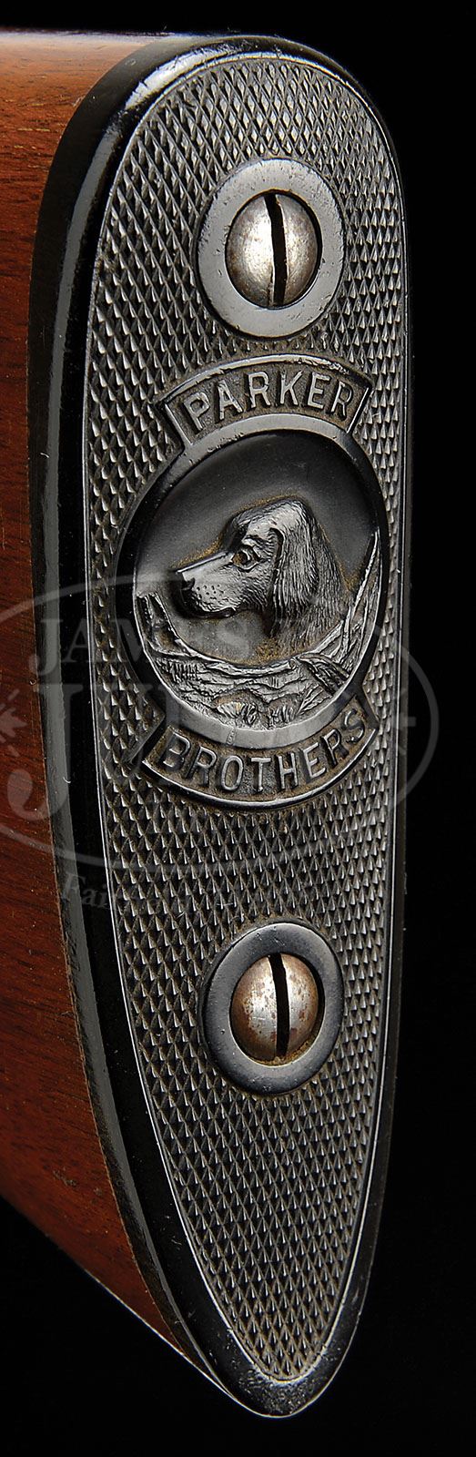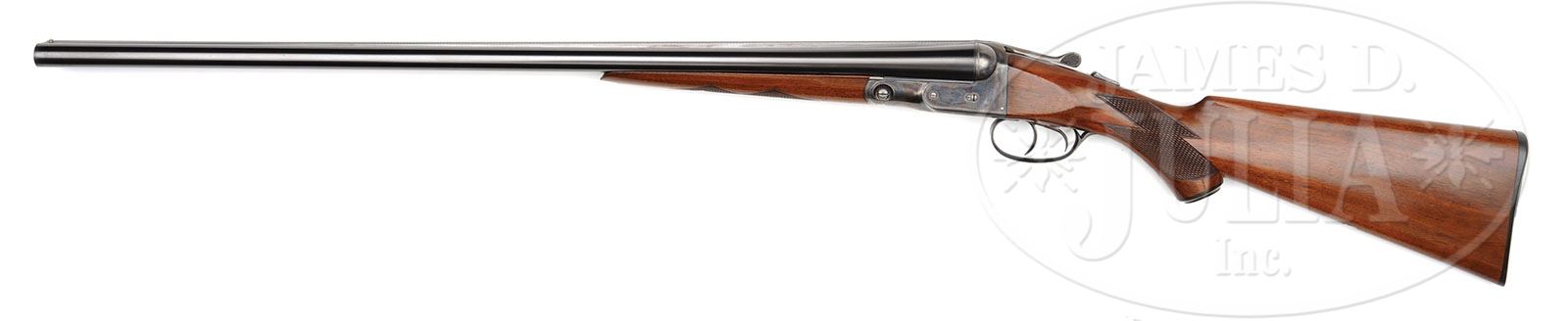 *EXCEPTIONAL HIGH CONDITION 16 GAUGE PARKER VH. SN 234883. Cal. 16 ga. 2-1/2″ Chambers. 1 Frame. Standard configuration with all correct markings. Configuration conforms to all specifications in the Parker Gun Identification and Serialization ledger with 28″ bbls and capped pistol grip stock which terminates in Parker dogs head buttplate without spur. Bore diameter: left-.661, right -.662. Bore restrictions: left -.026 (Full), right -.020 (Mod). Wall thickness: left -.024, right -.022. Drop at heel: 2-9/16″, drop at comb: 1-9/16″. Weight: 6 lbs. 8 oz. LOP: 14-1/4″. PROVENANCE: Woody Frey Collection. CONDITION: Excellent. Bbls retain approx 98% orig blue with a few light scratches. Action retains 92 – 95% orig vibrant case hardening color, silvered on sharp edges, and slightly around bottom of action and forend iron. Forend latch has a considerable amount of its orig color with signs of cleaning on thumbpiece. Trigger guard retains most of its orig blue, most loss due to flaking in grip area, which is mostly silver with some browning. Stocks retain nearly all of their orig finish with some light scratches and marks. Buttplate and grip cap are excellent. Bores are excellent, bright and shiny throughout. Action is tight. Screw heads appear unturned. A very fine small bore benchmark gun from which one can compare the originality of others. 4-48475 MGM121 (4,000-6,000)