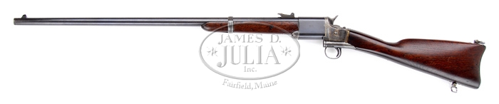 TRIPLETT & SCOTT REPEATING CARBINE. SN 1483. Cal. 50 RF. Rare Civil War era repeating carbine with 30” rnd bbl, pinched blade front sight & small carbine ladder rear sight. Left side of breech block is marked “KENTUCKY”. It has usual company markings on receiver & top tang. Magazine tube is located on left lower side of receiver and extends down into buttstock. Loading & ejecting is effected by depressing the lock lever on left side of hammer and rotating bbl & breech block to the right about 200 degrees, which activates extractor and continued rotation to the stop moves the spring-loaded magazine tube cover aside along a cartridge to be automatically loaded into chamber. In addition this unusual carbine has two sling swivels at heel & toe of stock. Mounted with nicely figured, uncheckered American walnut with tiny rnd forearm & straight stock with carbine buttplate. About 3,000 of these carbines with this bbl length were purchased by the State of Kentucky to arm the Kentucky Home Guard to protect supply lines for Sherman during his Atlanta campaign. They arrived too late to see Civil War service. CONDITION: Very fine. Bbl & breechblock retain 93-95% strong orig blue and receiver most of its orig case hardening turned silver with strong case colors on left side with faded colors elsewhere. Stock has repaired cracks over the thin part of magazine area and overall retains a fine professionally restored finish. Mechanics are fine, bright shiny bore with scattered pitting. 4-32814 JR452 (2,500-4,000)