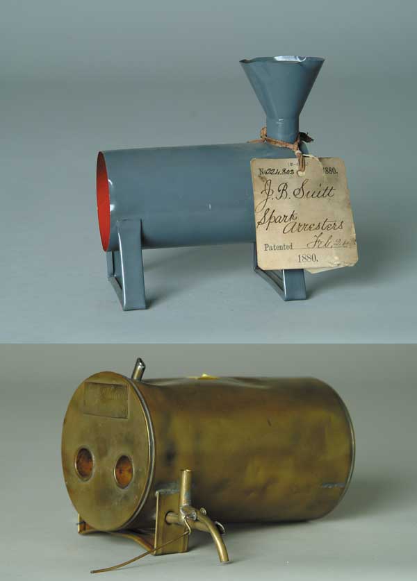 PATENT MODELS: LOT OF 2. 1) Spark Arrestors By J.B. Suitt. Original patent tag #224,802, dated Feb. 24, 1880. Horizontal tin cylinder with chimney at top. SIZE: 6 3/4″ l. x 7″ t. CONDITION: Gray model appears to have been repainted, chimney shows some dents, otherwise good. 2) Boiler By T.H. Wheeler. No patent tag. Does have brass plaque indicating inventor’s name from Dowagiac, Mich. Brass cylinder boiler with bent metal foot base and two vent holes. SIZE: 8 1/4″ l. x 4 3/4″ diam. CONDITION: Missing one bent metal leg and has various shallow dents throughout, otherwise generally good. 1-1378, 1-1475 (300-500) Auction: Advertising, Toy & Doll - Fall 2003 Please Note: All prices include the hammer price plus the buyer’s premium, which is paid by the buyer as part of the purchase price. The prices noted here after the auction are considered unofficial and do not become official until after the 46th day. |
