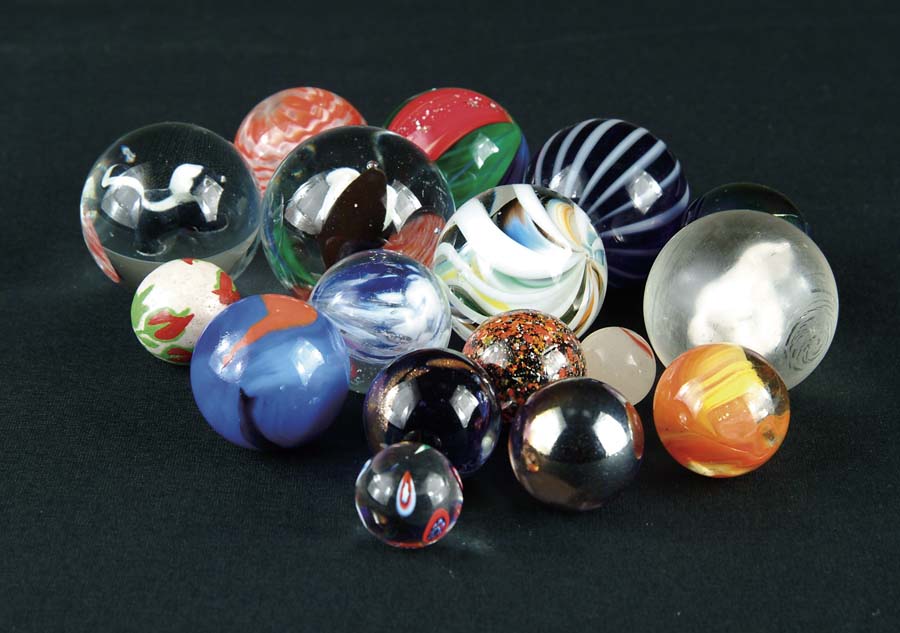 LOT OF 17 CONTEMPORARY MARBLES. This large lot of marbles are mostly hand-made glass, from 7/8” to 2 1/8″. CONDITION: All near mint. WB 1-4651-2 (300-400) Auction: Advertising, Toy & Doll - Spring 2005 Please Note: All prices include the hammer price plus the buyer’s premium, which is paid by the buyer as part of the purchase price. The prices noted here after the auction are considered unofficial and do not become official until after the 46th day. |