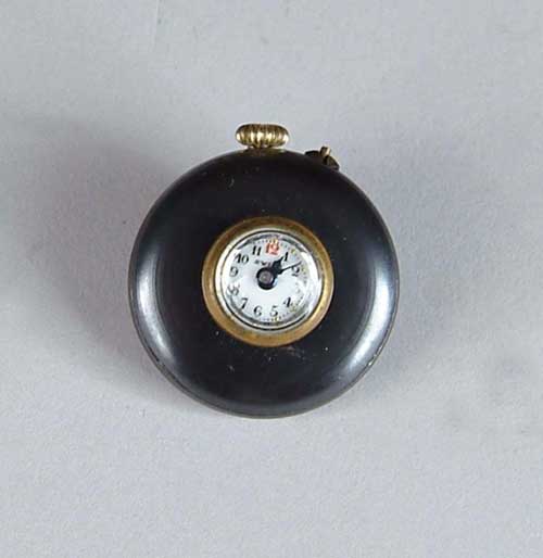 RARE AND INTERESTING LAPEL WATCH. White enamel dial marked “Swiss”. SIZE: 1” diameter CONDITION: Unknown working order, very good. 9-97993 (200-400)